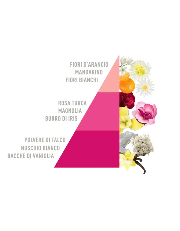 Basisnoten: talkpoeder, witte muskus, vanillestokjes